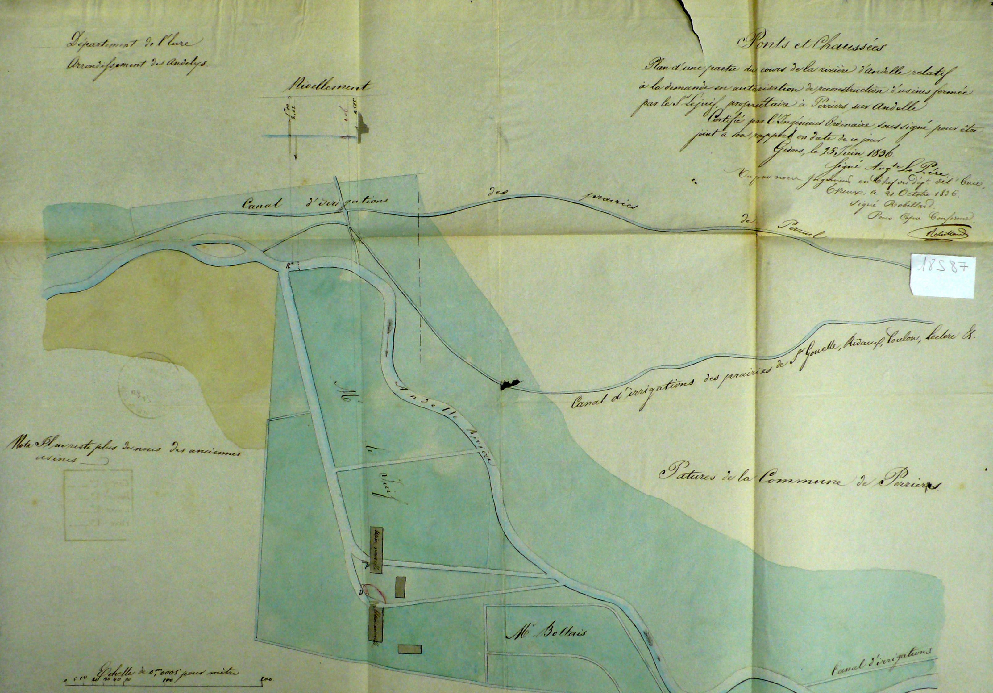 Plan de situation des nouvelles usines Lejuif, 25 juin 1836 (AD Eure, 18 S 87).Immatriculation