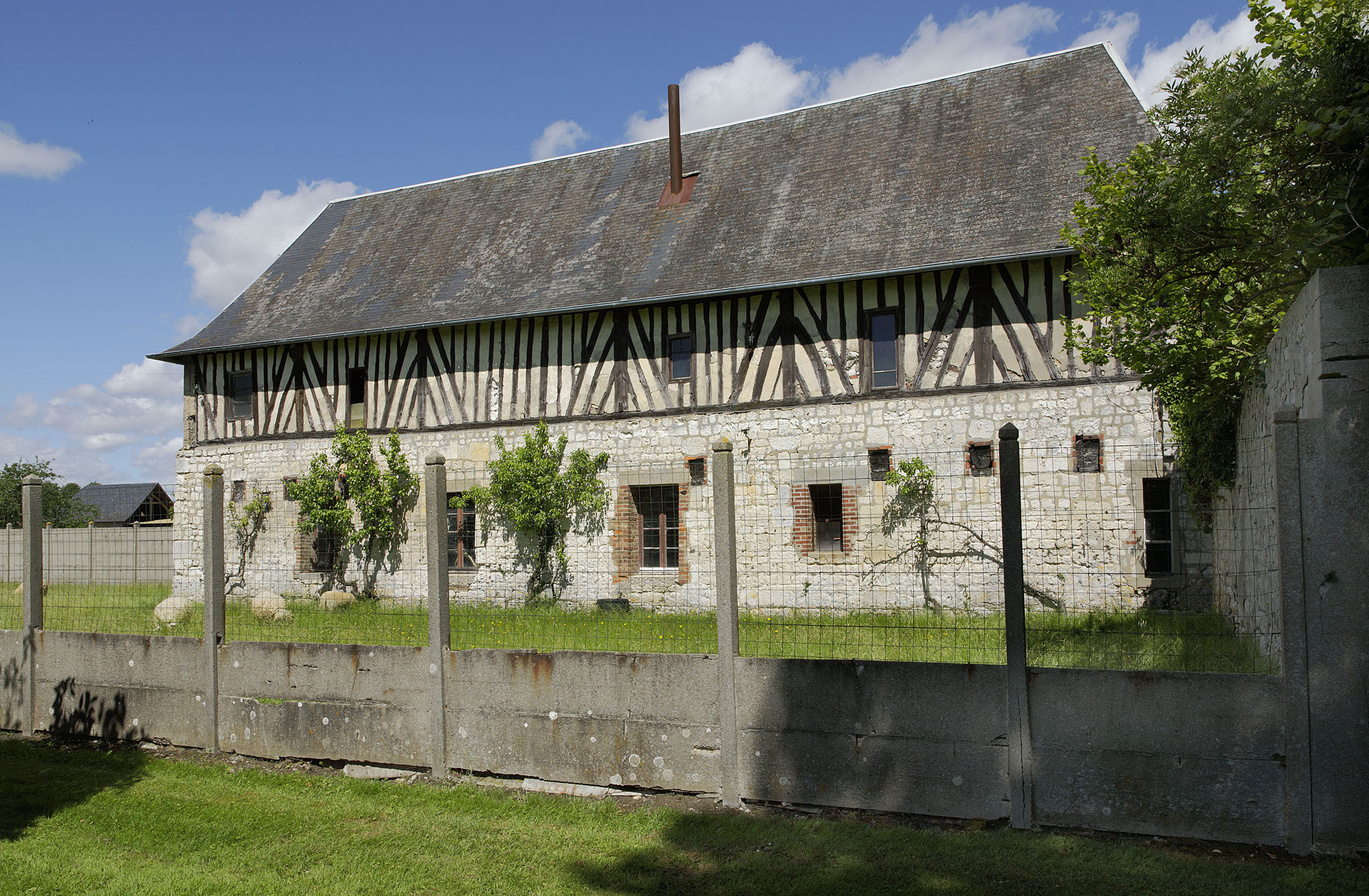 Anciennes grange et écuries, façade arrière, côté sud.Immatriculation