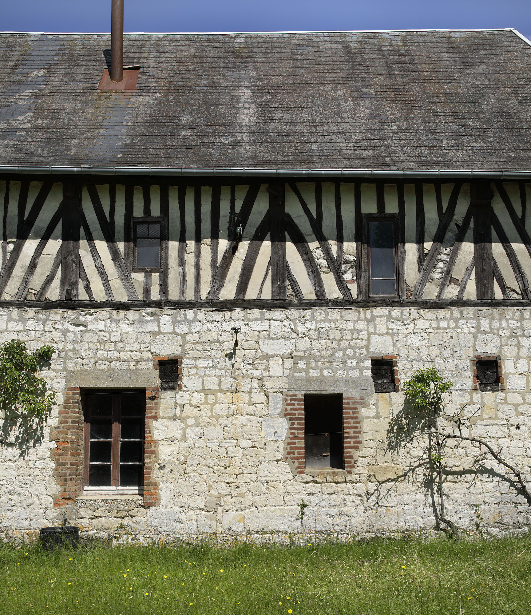 Anciennes grange et écuries, façade arrière, détail.Immatriculation