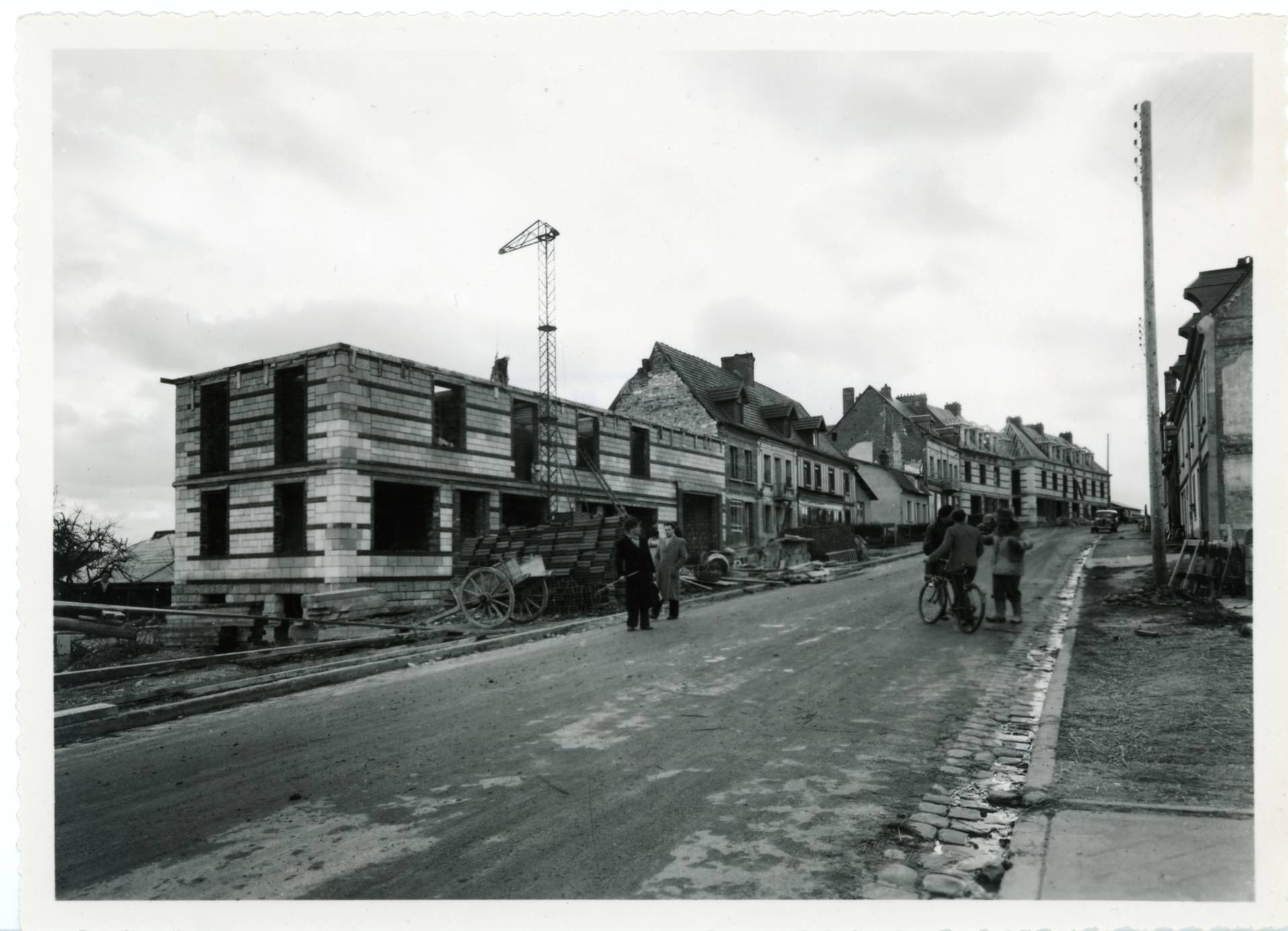 Reconstruction du centre-ville.- Photographie ancienne, album privé de Louis Bai.Immatriculation