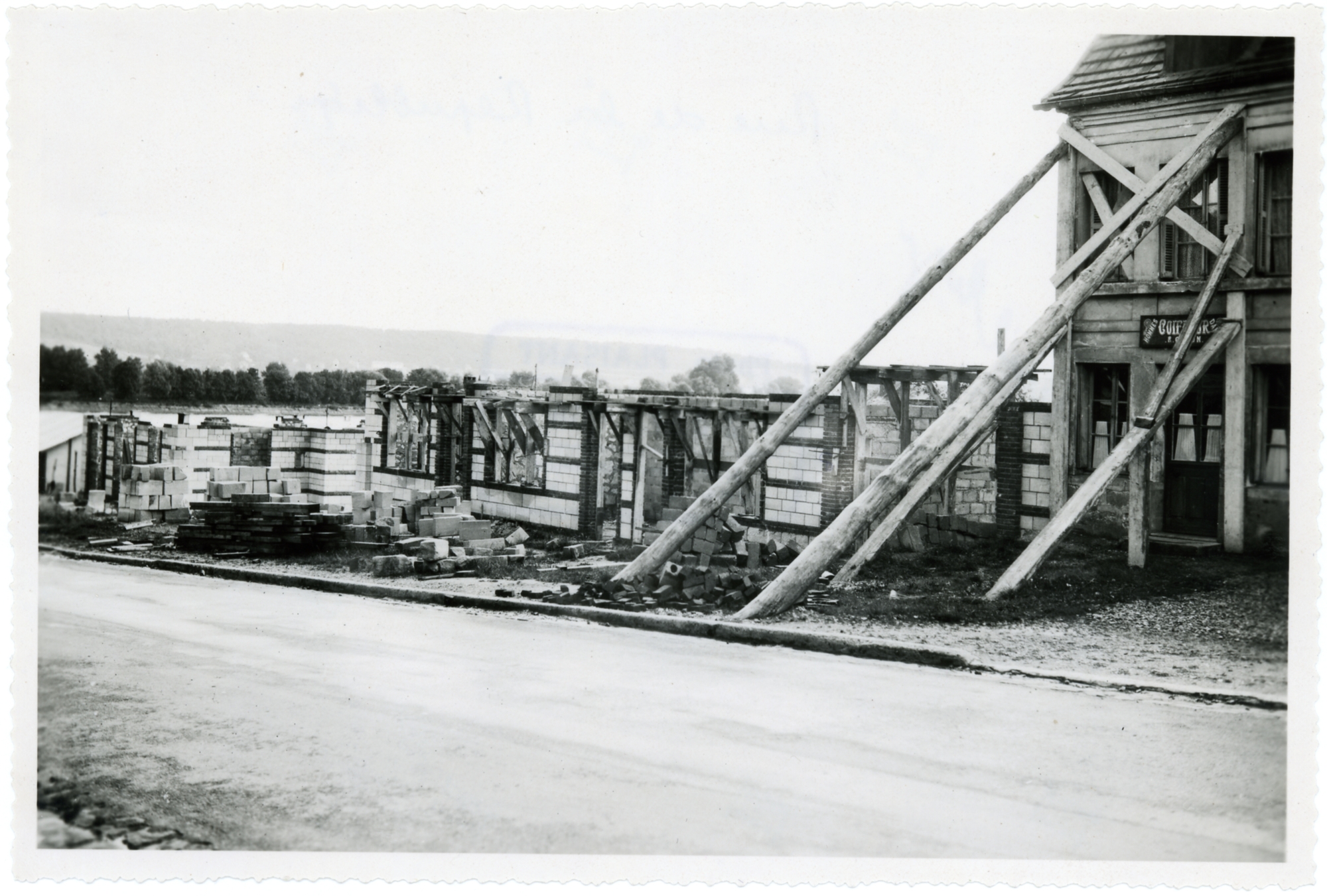 Reconstruction du centre-ville.- Photographie ancienne, album privé de Louis Bai.Immatriculation