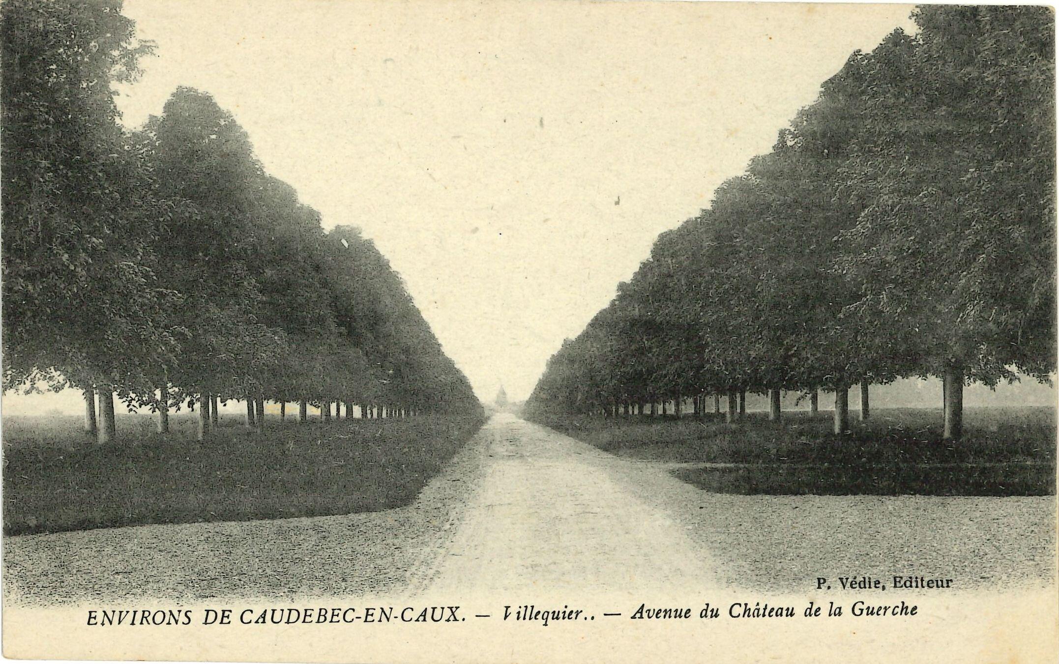 ENVIRONS DE CAUDEBEC-EN-CAUX.- Villequier. Avenue du Château de la Guerche.- Carte postale, P. Védie, éditeur, vers 1910 (Collection particulière).Immatriculation