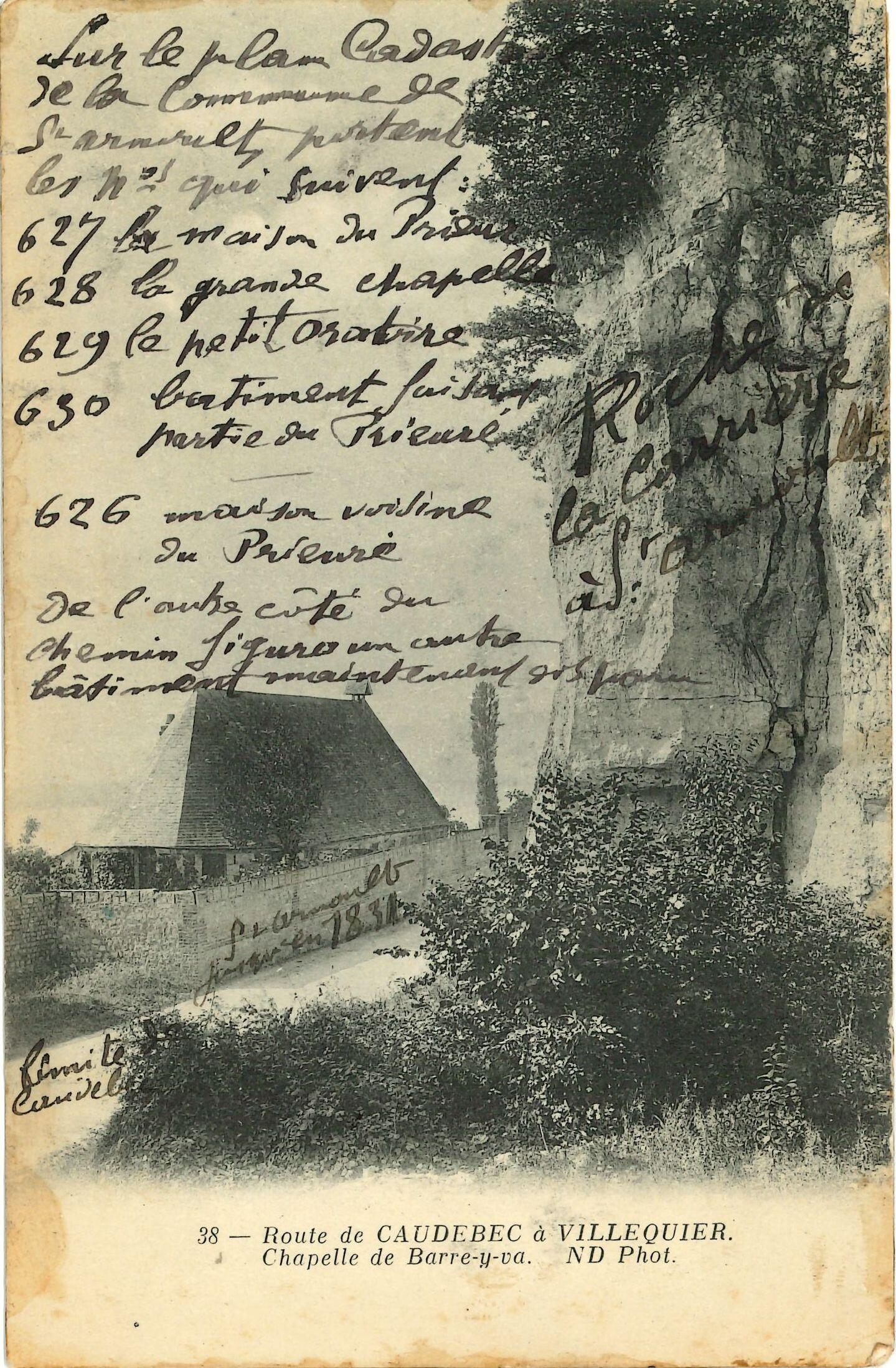 38 - Route de CAUDEBEC à VILLEQUIER. Chapelle de la Barre-y-va.- Carte postale, ND Phot., vers 1920 (Collection Leroux).Immatriculation
