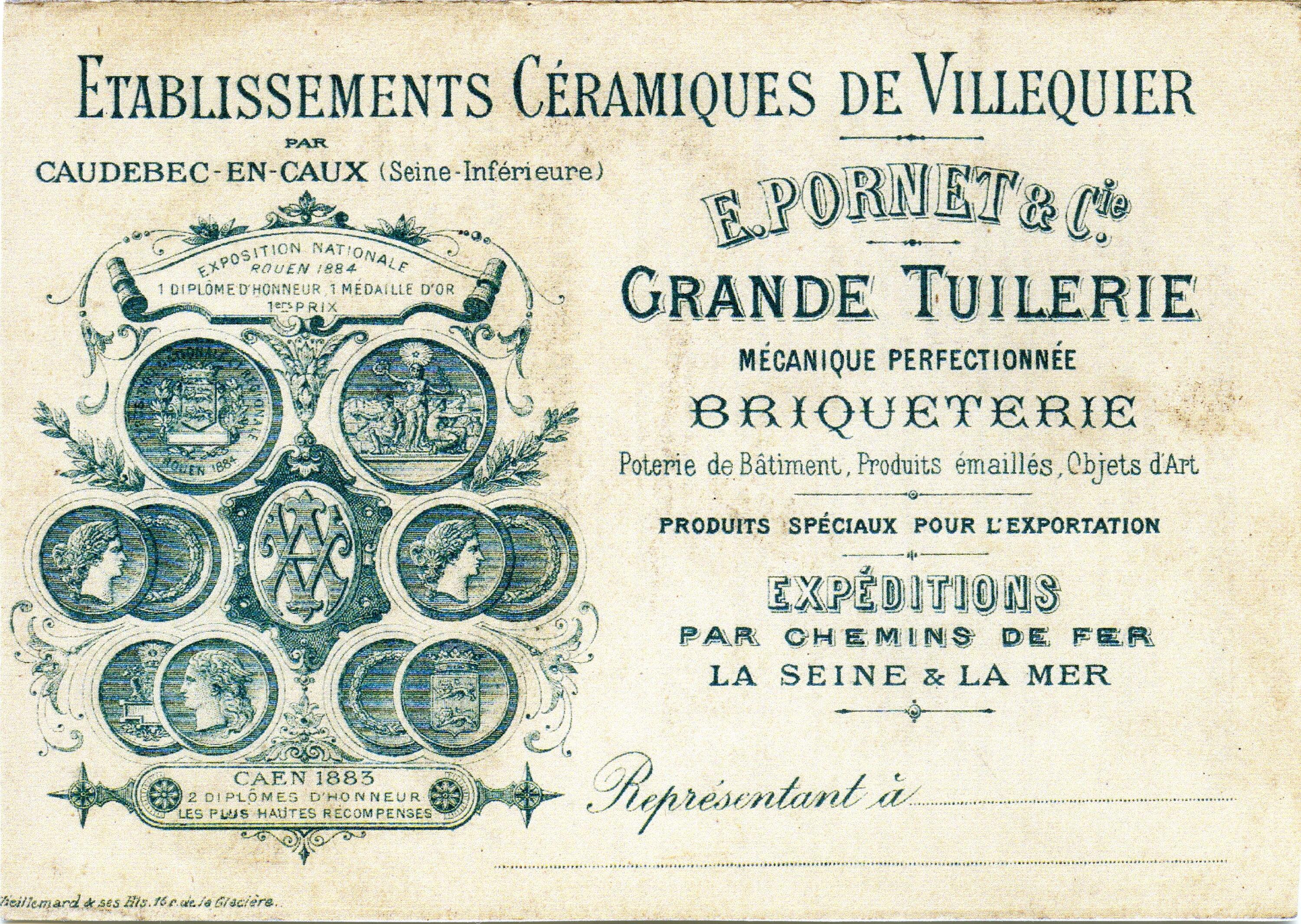 Plaquette publicitaire des établissements céramiques de Villequier.- Papier à en-tête, vers 1880 (Collection particulière).Immatriculation