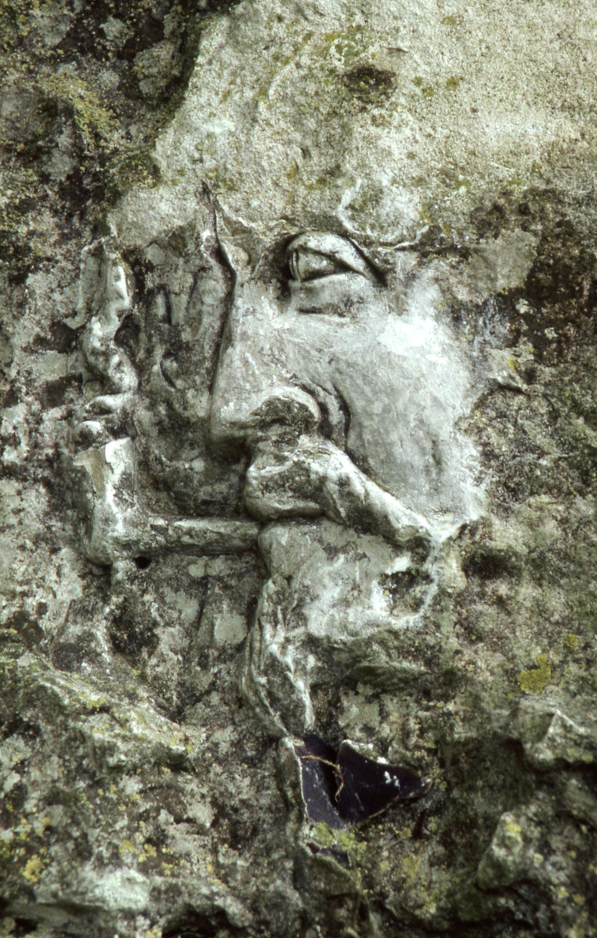 Sculpture en bas-relief, dite L'Homme à la pipe, vers 1870.- Photographie par Alain Huon, 1981.Immatriculation