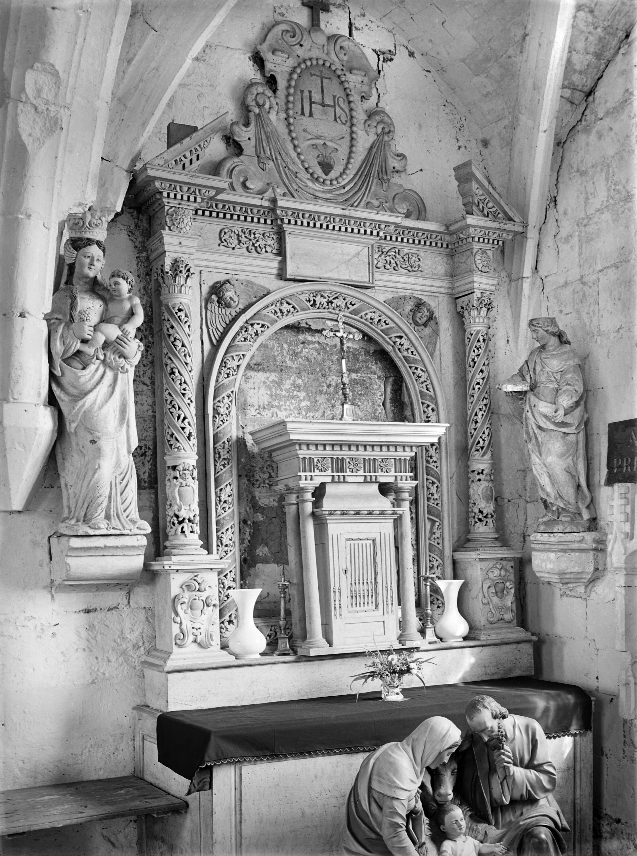 Vue d'ensemble de l'autel retable secondaire de la chapelle sud.- cliché sur verre au gélatinobromure d'argent, Fonds Bailly 87 Fi 89 (AD Seine-Maritime, 21 Fi).Immatriculation