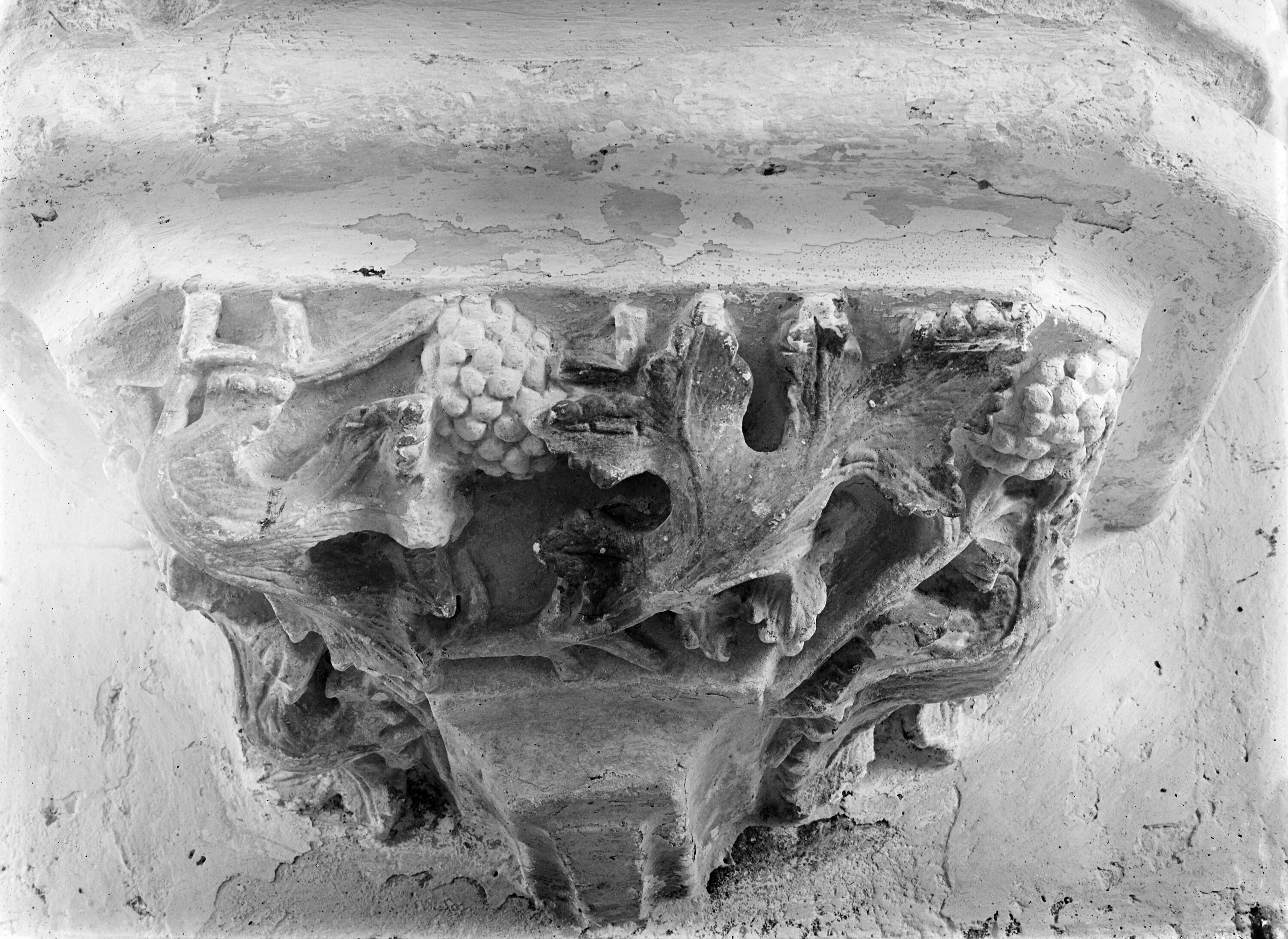 Culot au décor de vigne, détail.- Photographie argentique noir et blanc (AD Seine-Maritime, 21 Fi).Immatriculation