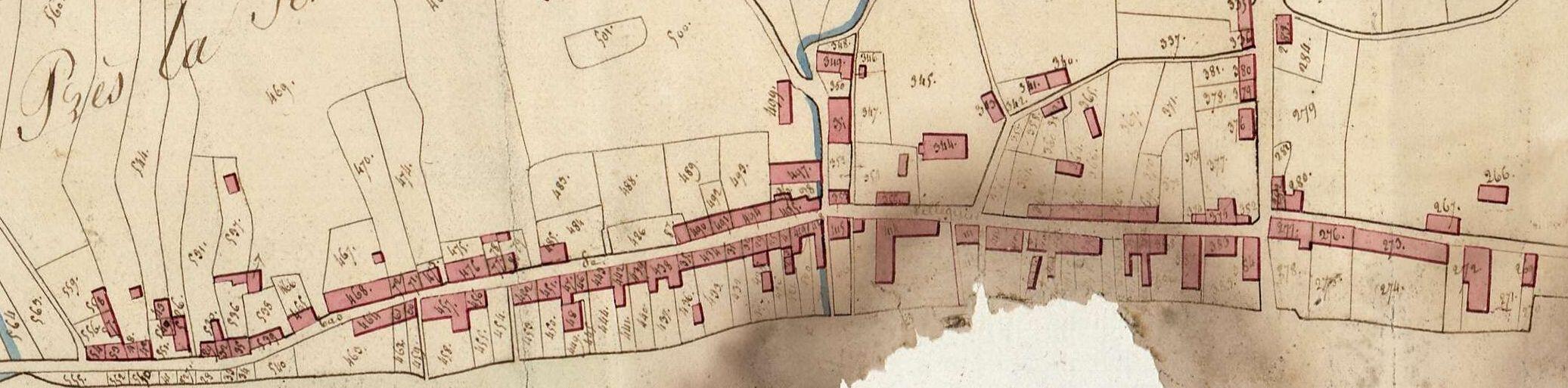 Alignement du bord de Seine.- Extrait du cadastre napoléonien de Villequier, section B du Bas, 2e feuille, 1818 (AD Seine-Maritime, 3PL4_4).Immatriculation