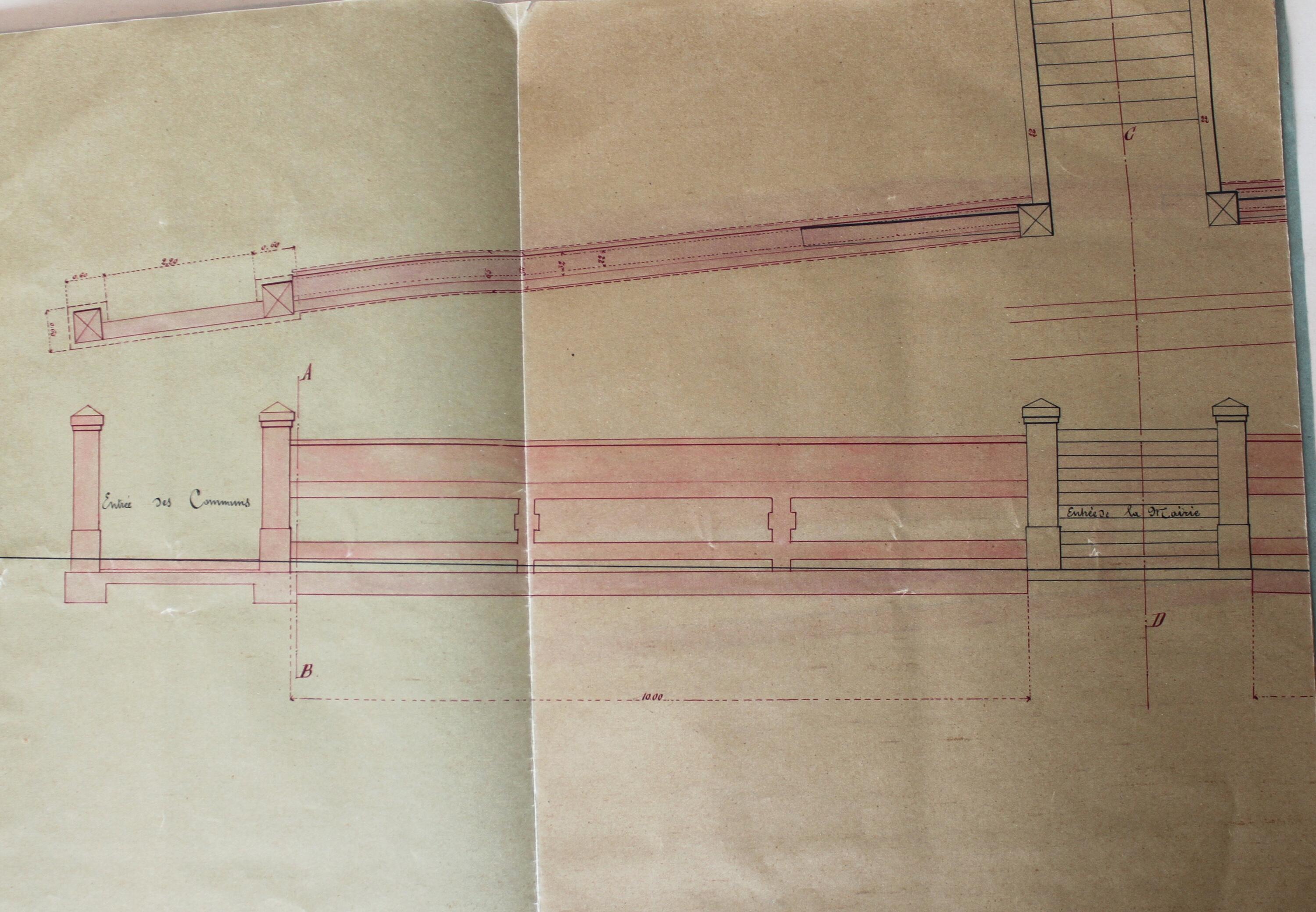 Construction dun mur de soutènement devant la mairie-école.- Plan dressé par l'agent-voyer cantonal, 13 septembre 1909 (AD Seine Maritime / 2O 2709).Immatriculation