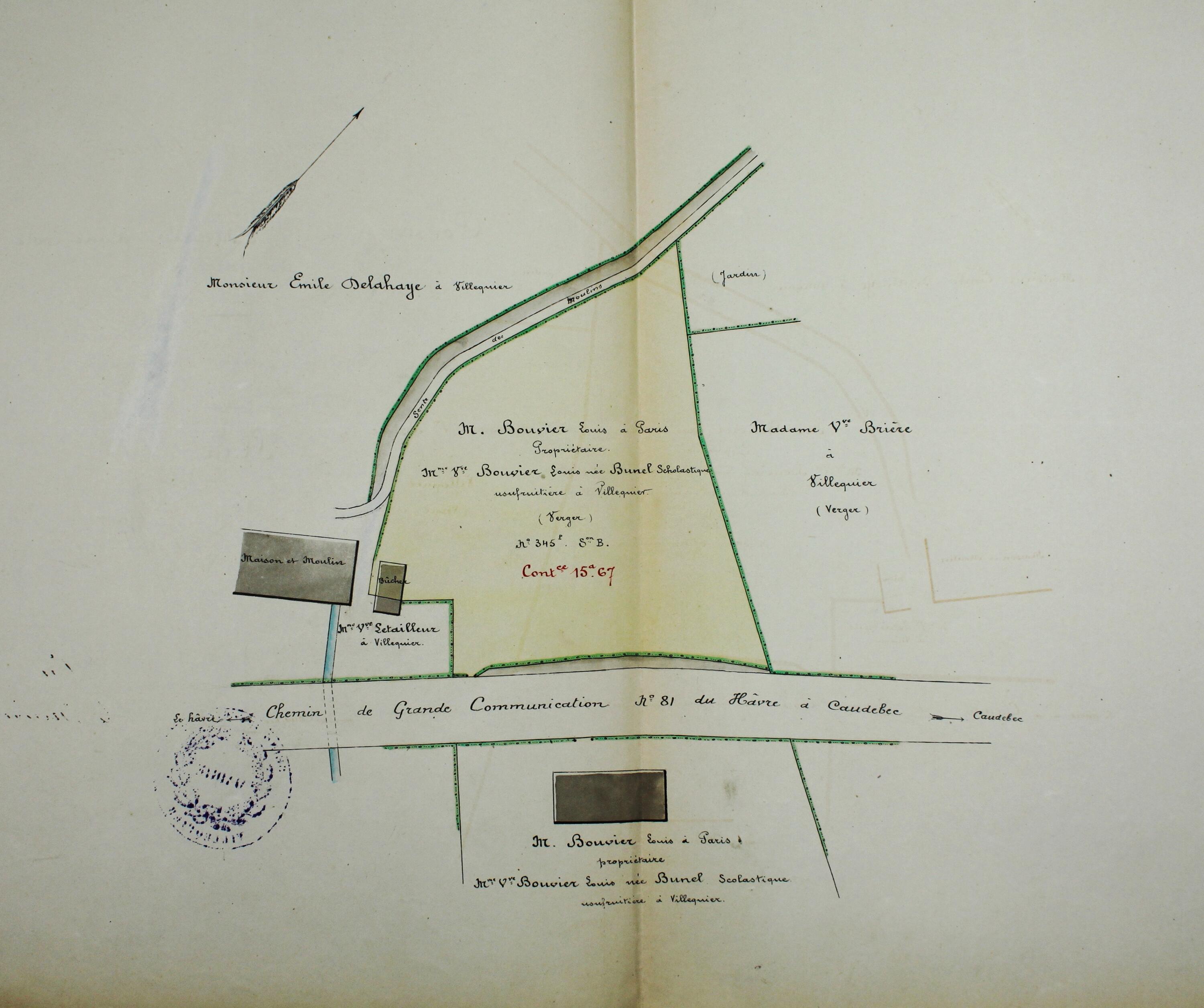 Construction d'une mairie et d'une école de garçons, projet d'acquisition d'une propriété.- Plan dressé par l'agent-voyer à Caudebec-en-Caux, 12 avril 1891 (AD Seine Maritime / 2O 2709).Immatriculation