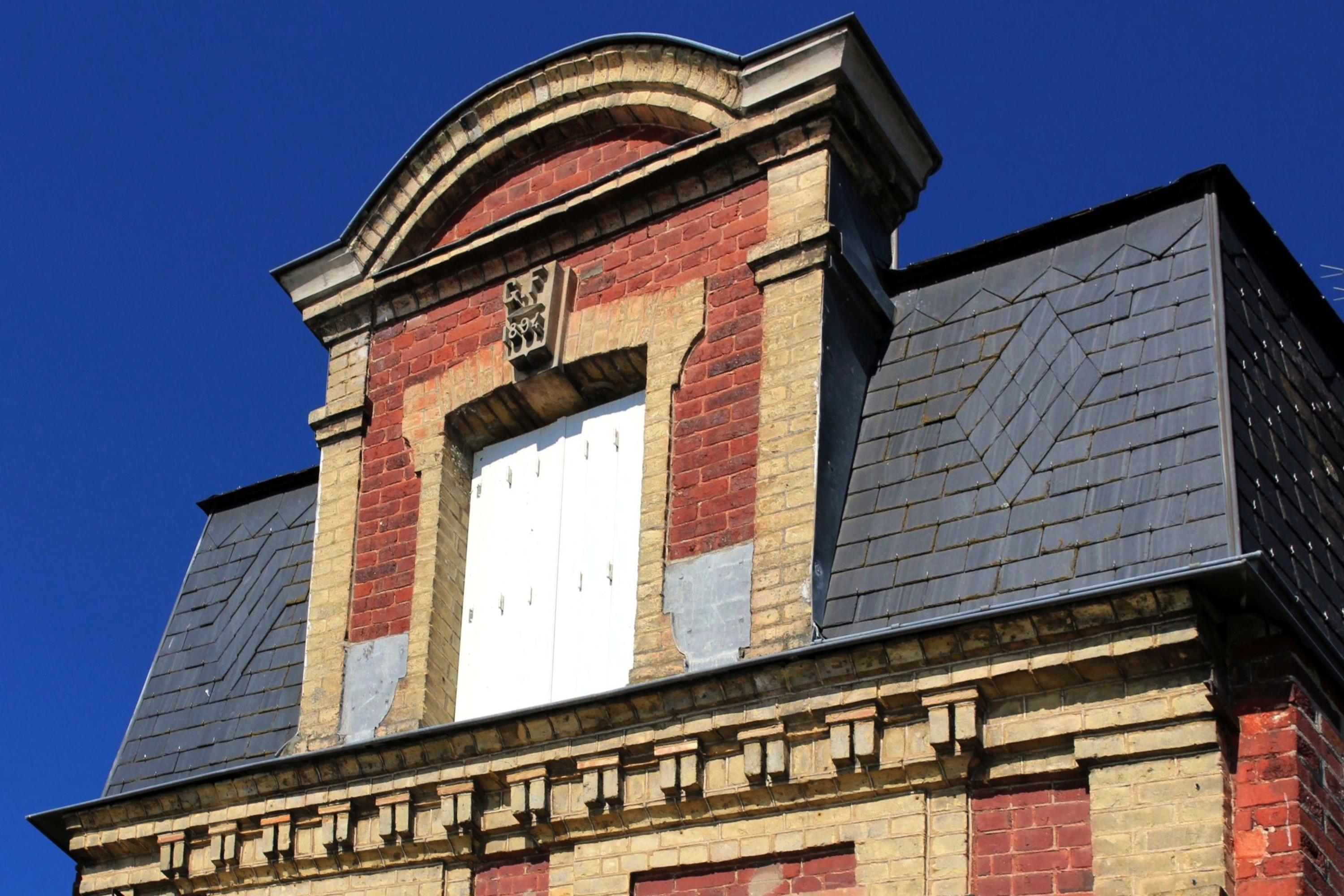 Maison bourgeoise, détail de la lucarne portant les initiales G. F. et la date : 1894.- Quai Victor Hugo (AH 178).Immatriculation