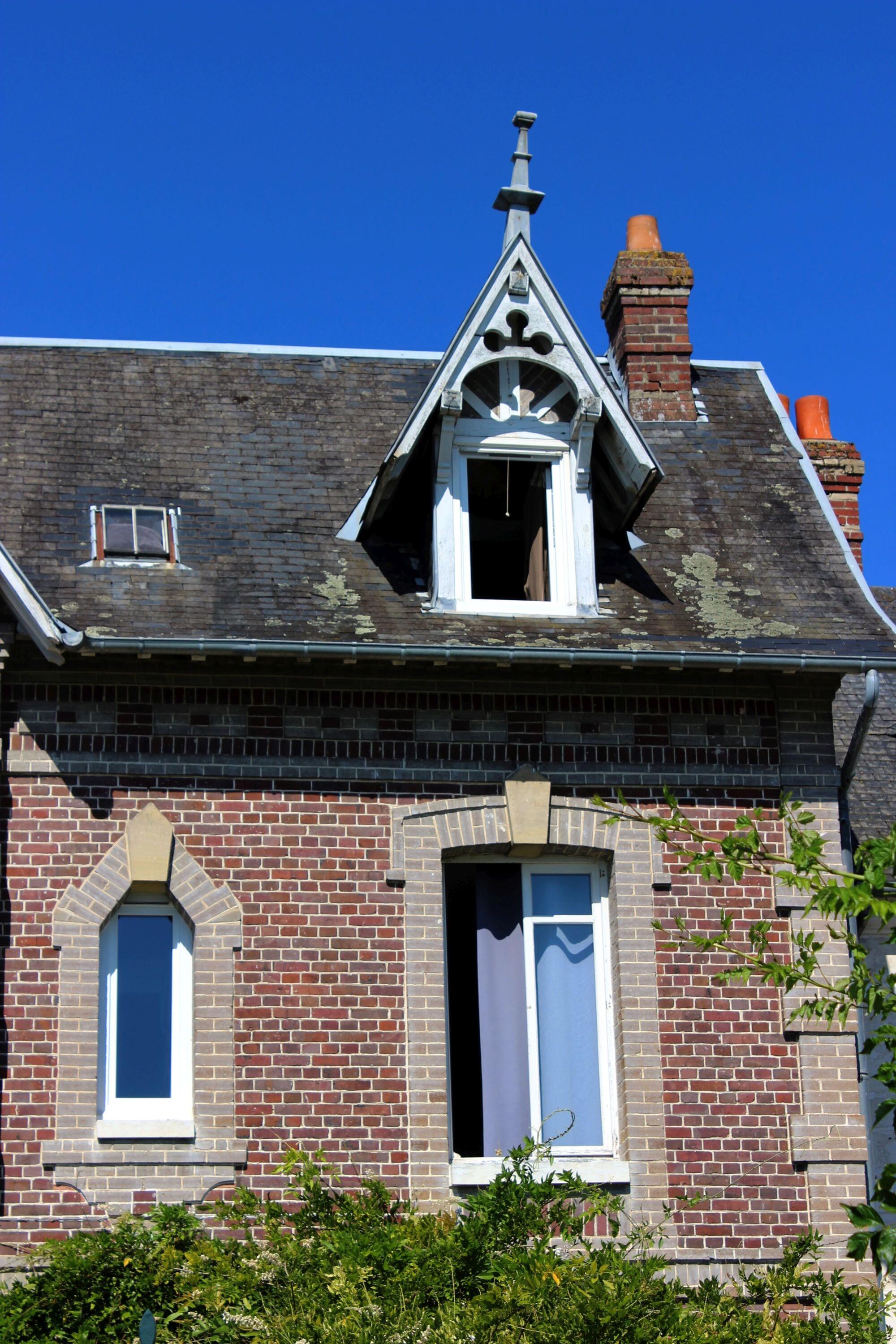 Villa, détail des baies de l'étage et de la lucarne.- Quai Victor Hugo (AH 204).Immatriculation