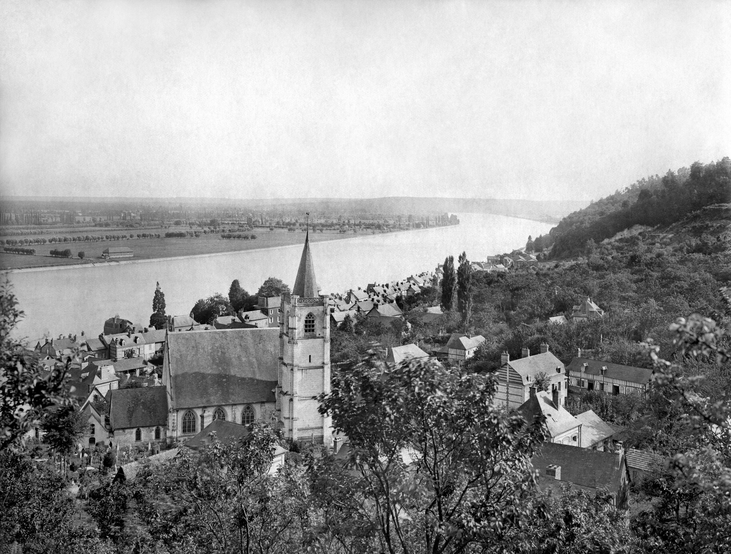 Vue d'ensemble depuis les hauteurs.- Photographie argentique en noir et blanc (Collection du musée Victor Hugo).Immatriculation