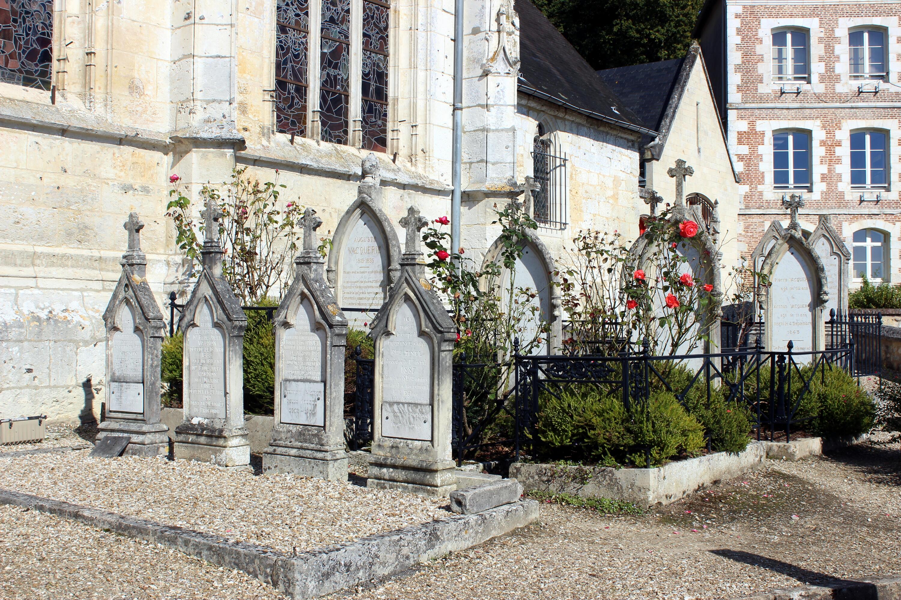 Vue du côté des tombes de la famille Vacquerie.Immatriculation