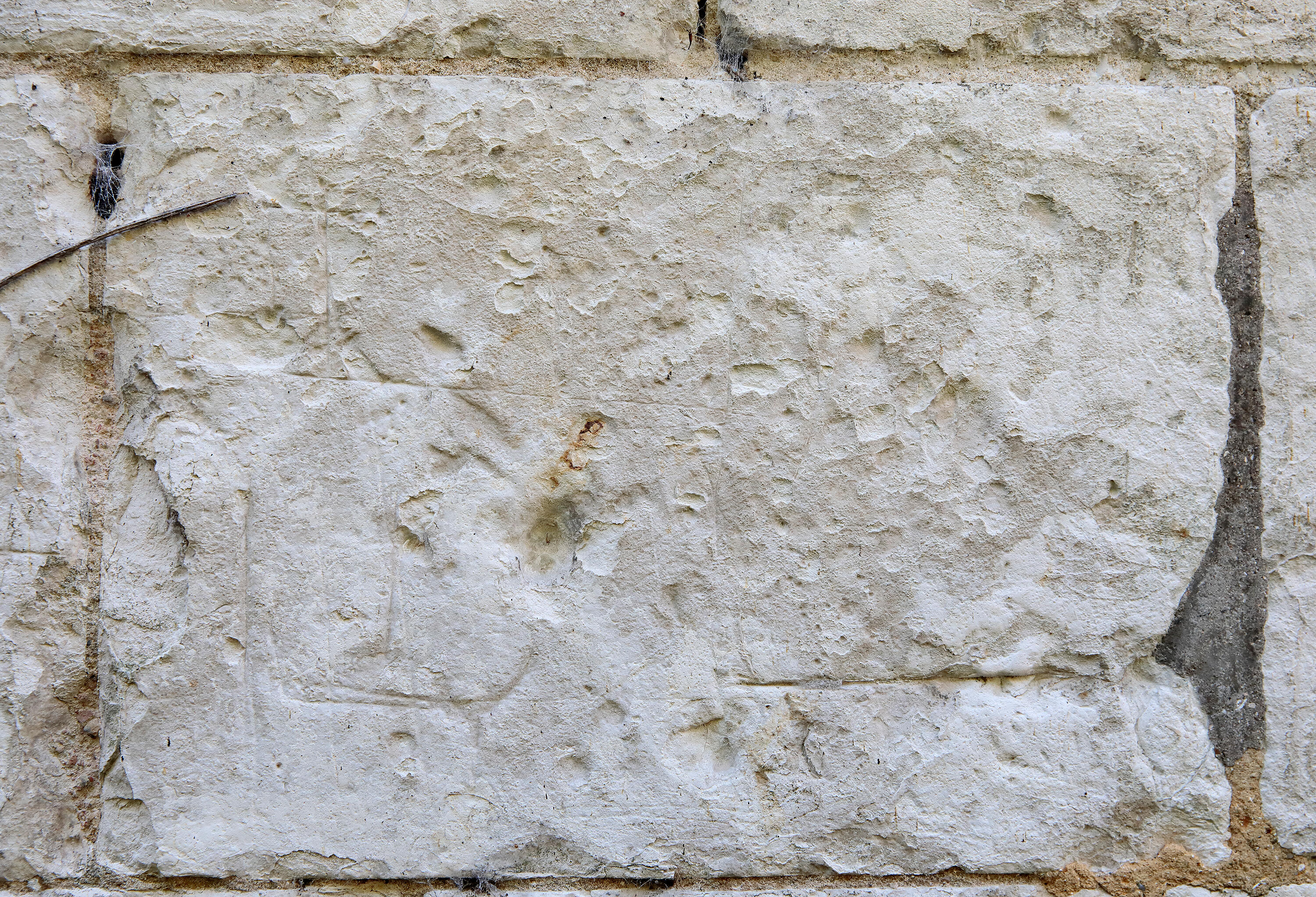Manoir, extérieur, façade nord, graffiti marin, détail.Immatriculation