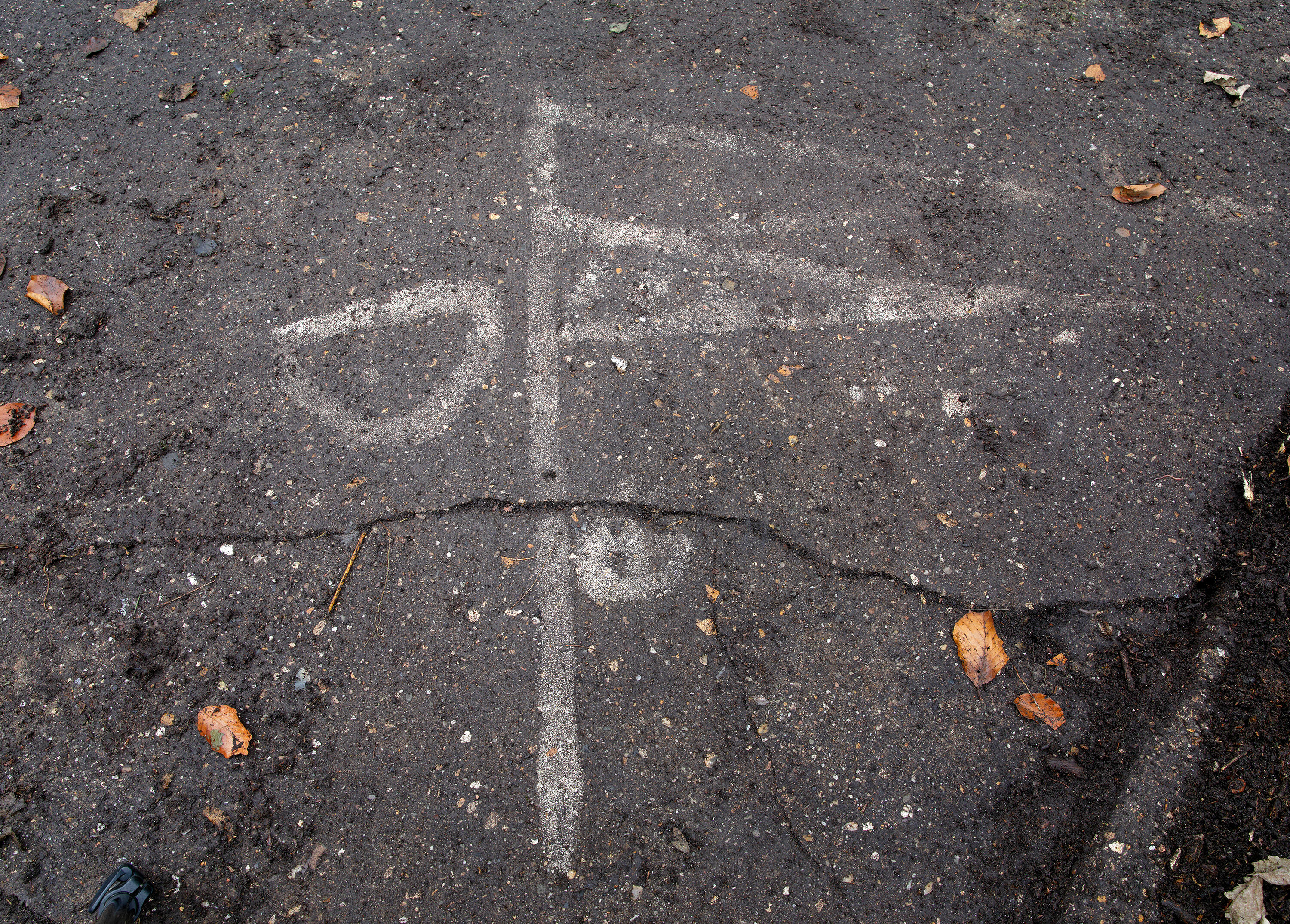 Dalle amagnétique, signe tactique [?] non identifié, détail avant nettoyage.Immatriculation