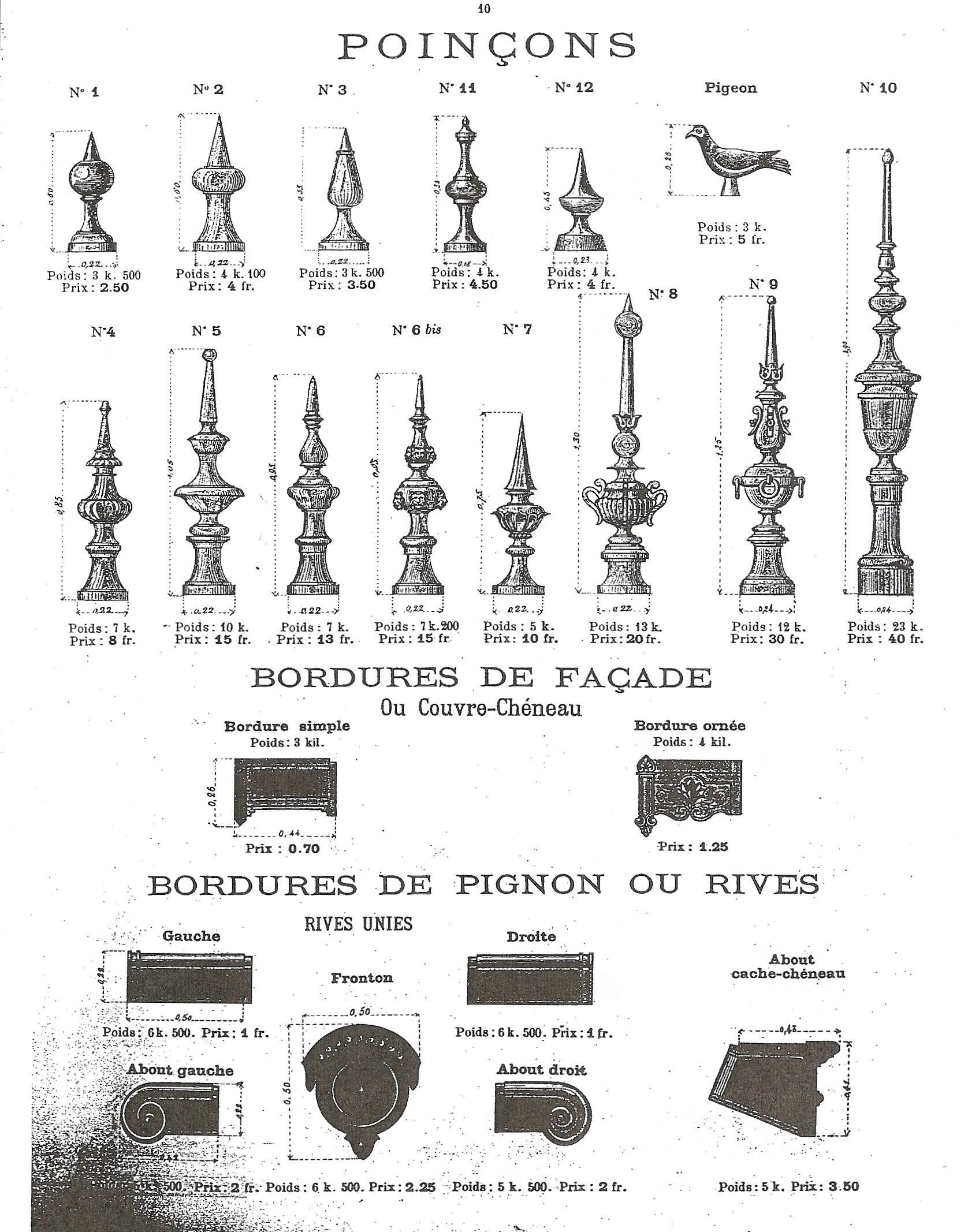 Page consacrée aux poinçons, détail . Catalogue de la production des Etablissements Céramique de Villequier, 1890. (Collection particulière)Immatriculation