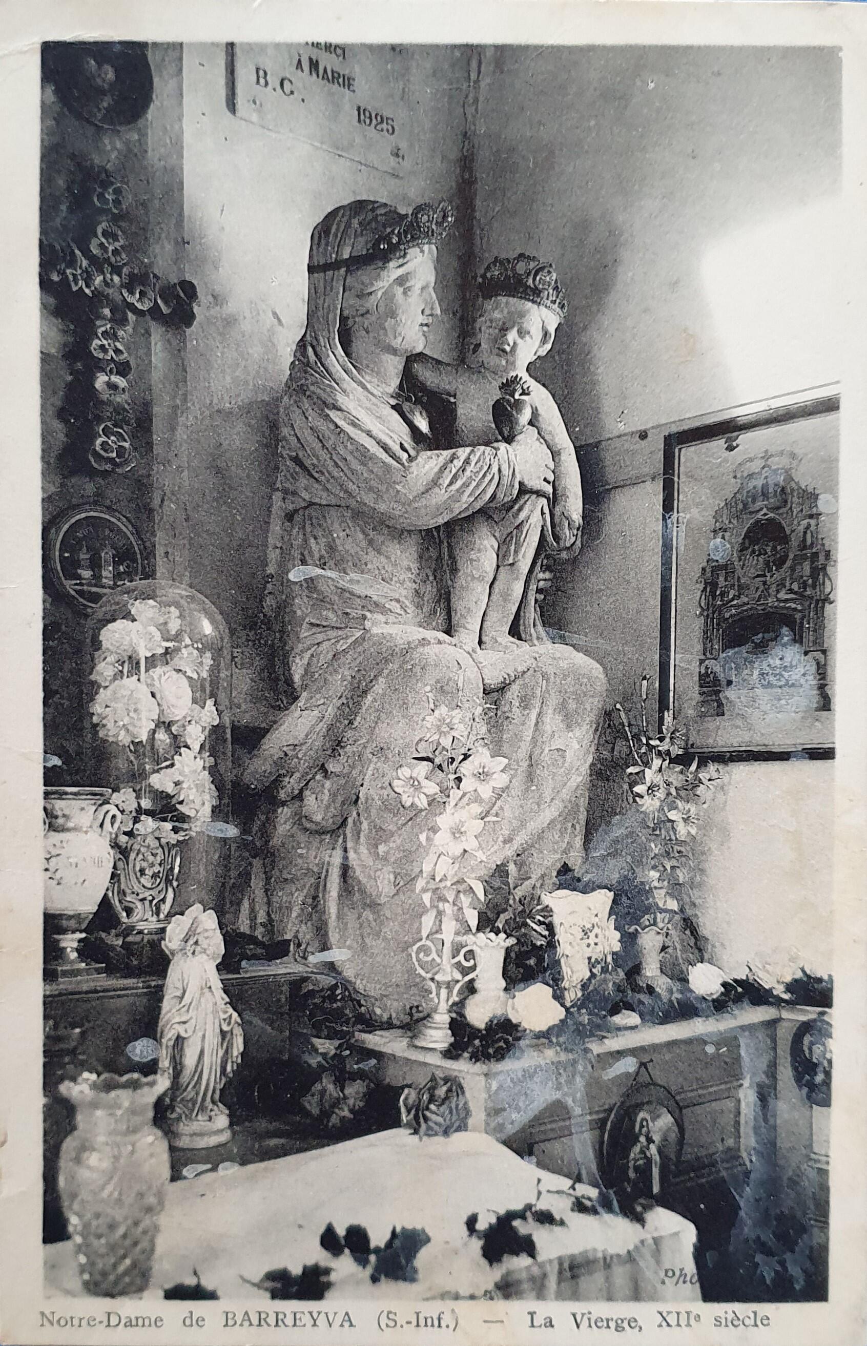 Notre-Dame de BARREYVA (S.inf.) - La Vierge, XIIe siècle.- Carte postale, sans date [vers 1900-1910], photo Herault. (Collection Bardel).Immatriculation