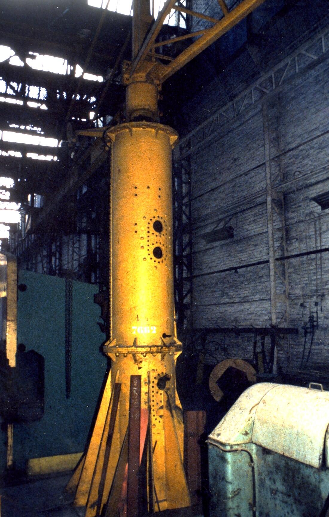 Section de l'un des mâts du QUEVILLY remployée dans l'usine de construction navale Chantiers de Normandie.- Photographie vers 1985. (Collection Lacaille).Immatriculation