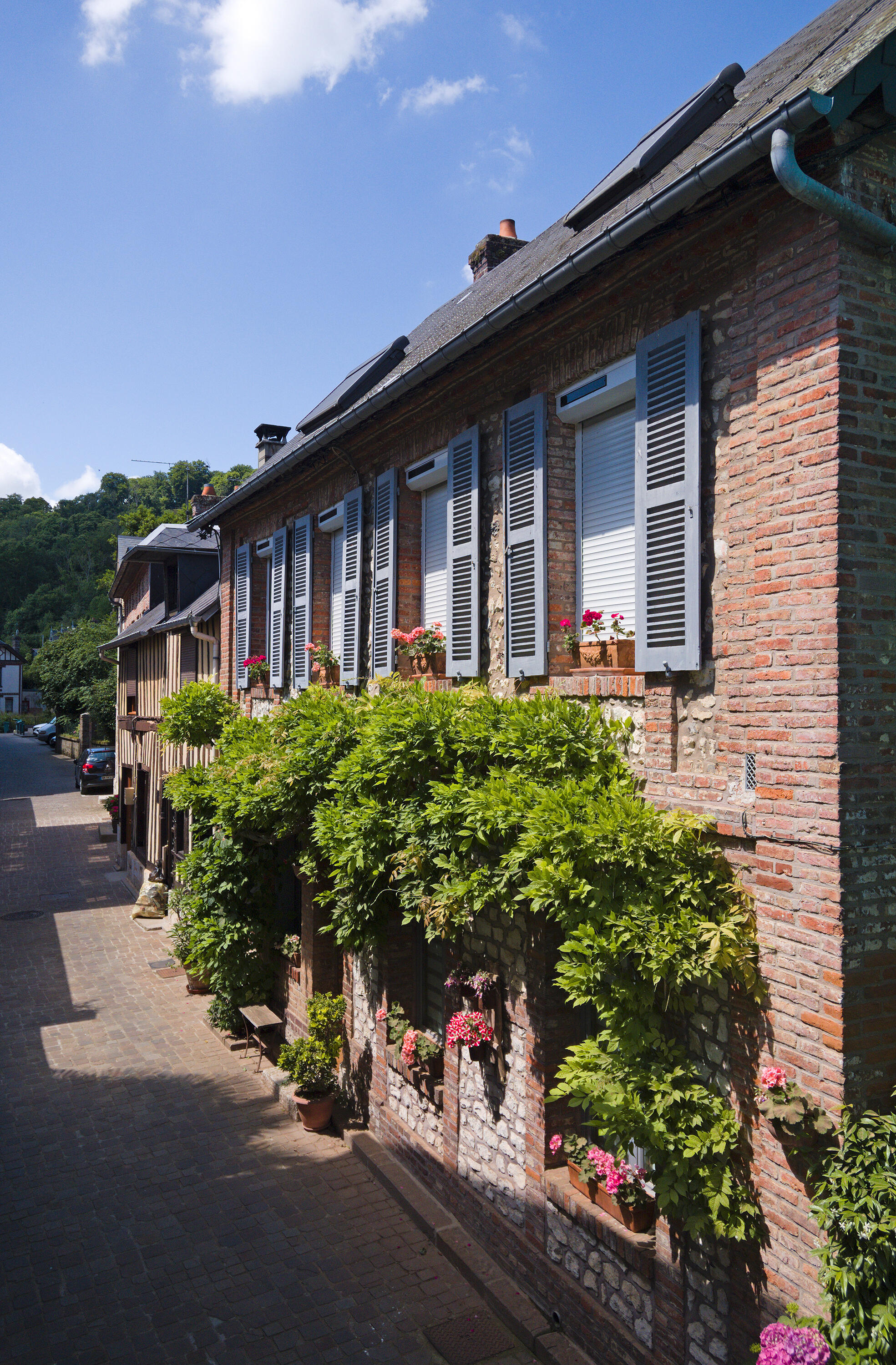 Vue d'ensemble avec maison en brique au premier plan, vers la place du musée Victor Hugo.Immatriculation