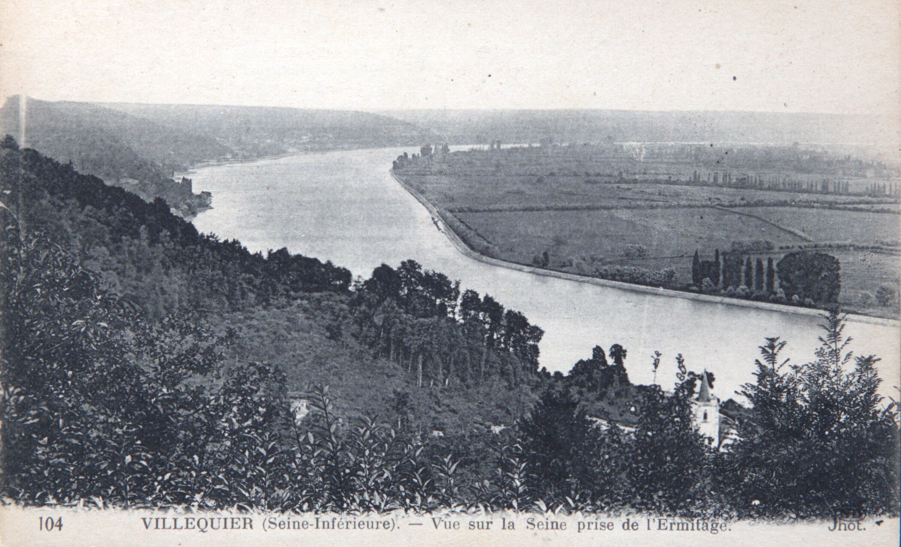 104 VILLEQUIER - (Seine-Inférieure). - Vue de la Seine prise de l'Ermitage.- Carte postale, sans date [vers 1900-1910], photographie et édition ND. (Collection Bardel).Immatriculation