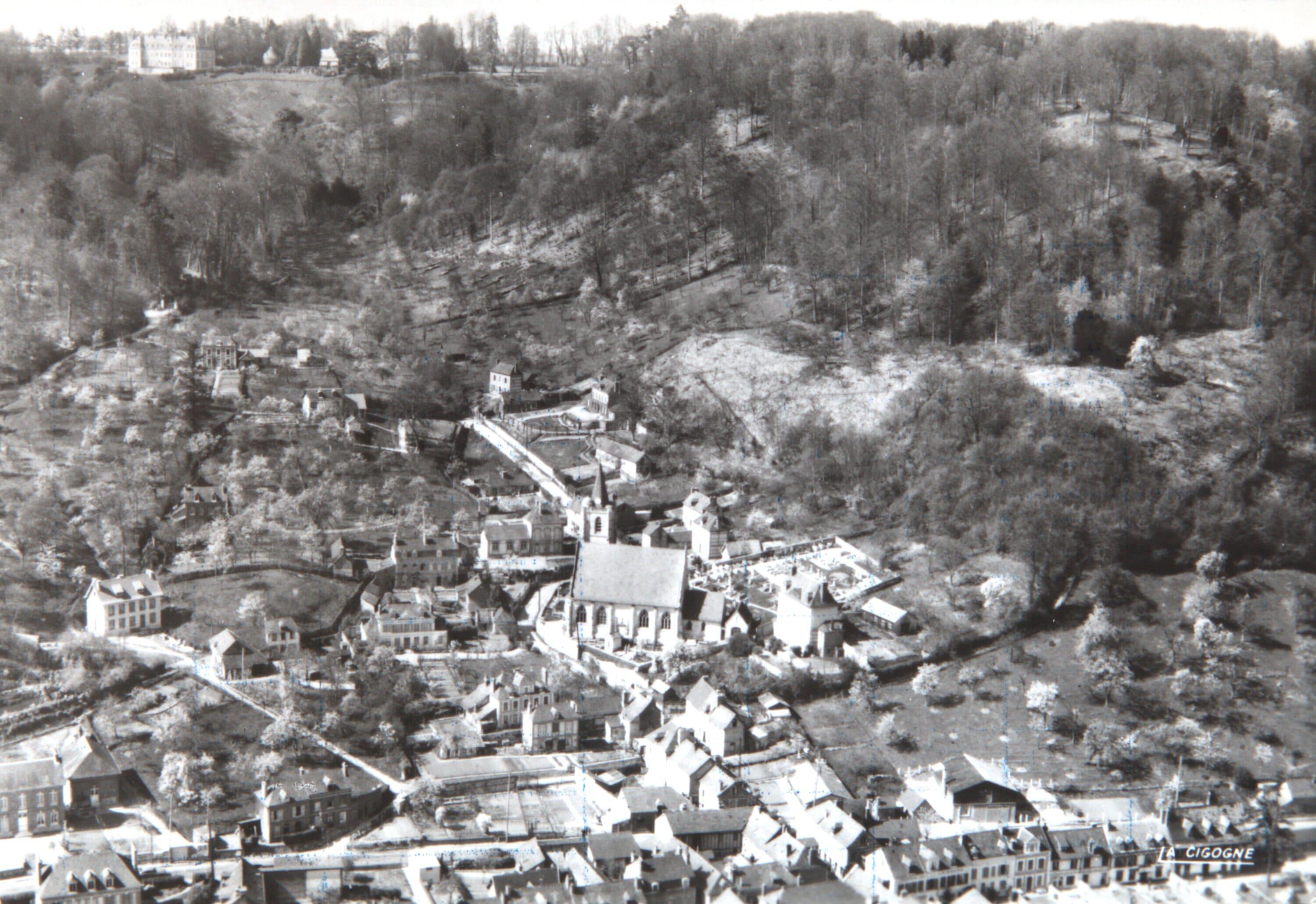 Vue aérienne de Villequier.- Carte postale 76.742.10, avant 1954, photographie R. Henrard, éditions La Cigogne. (Collection Bardel).Immatriculation