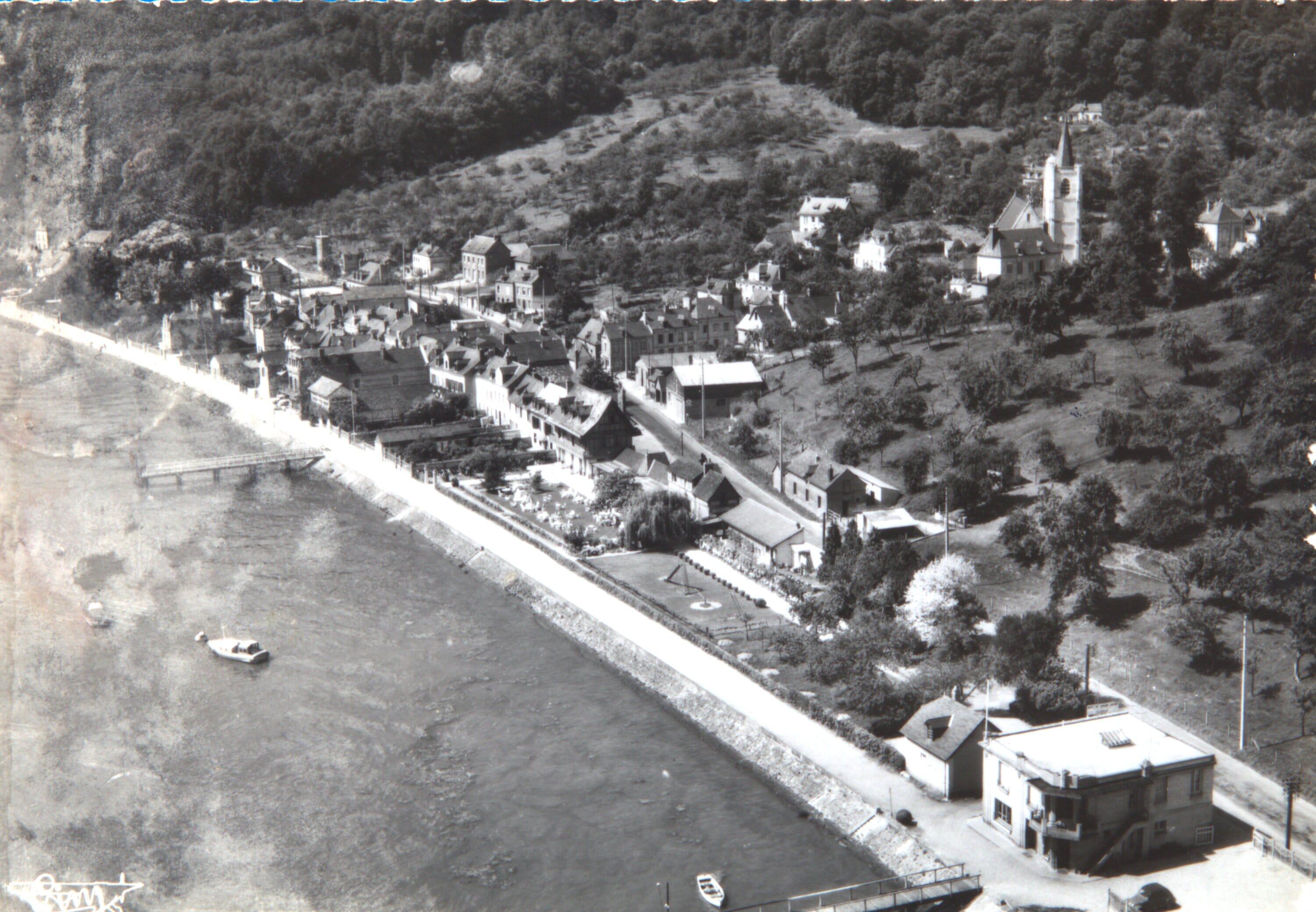 Vue aérienne de Villequier.- Carte postale n° 93-75 A, s.d. [vers 1950], éditions Cim. (Collection Bardel).Immatriculation