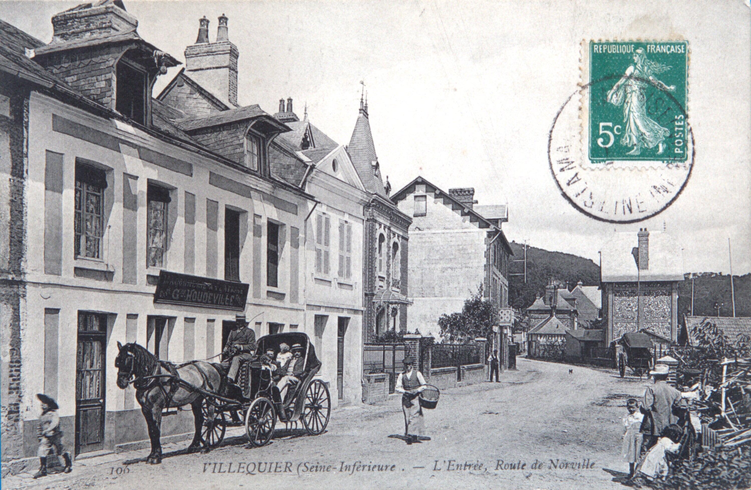 106. VILLEQUIER - (Seine-Inférieure). L'Entrée, Route de Norville.- Carte postale, s.d. [vers 1900-1910]. (Collection Bardel).Immatriculation