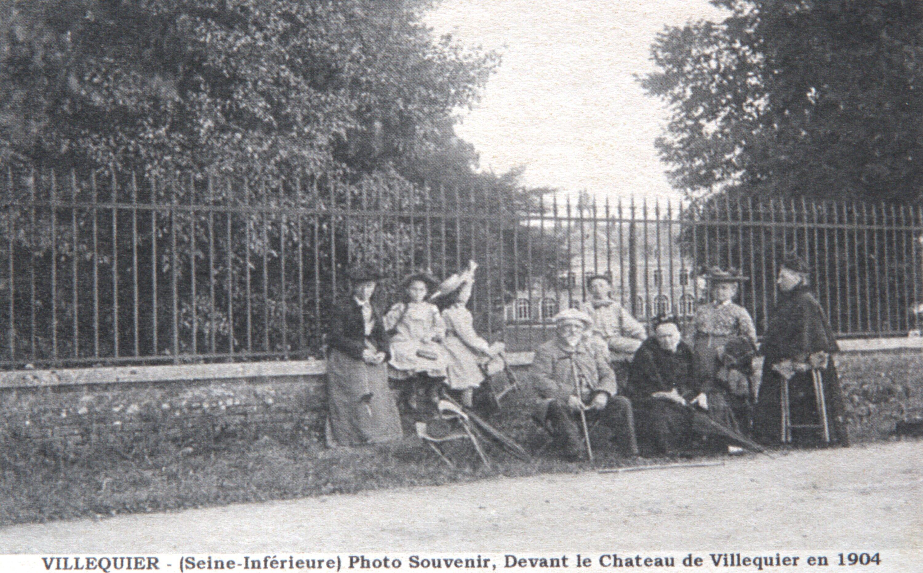 VILLEQUIER - (Seine-Inférieure) Photo Souvenir, Devant la Château de Villequier en 1904.- Carte postale, s.d. [vers 1900-1910], réédition Image de France, reproduction cauchoise. (Collection Bardel).Immatriculation
