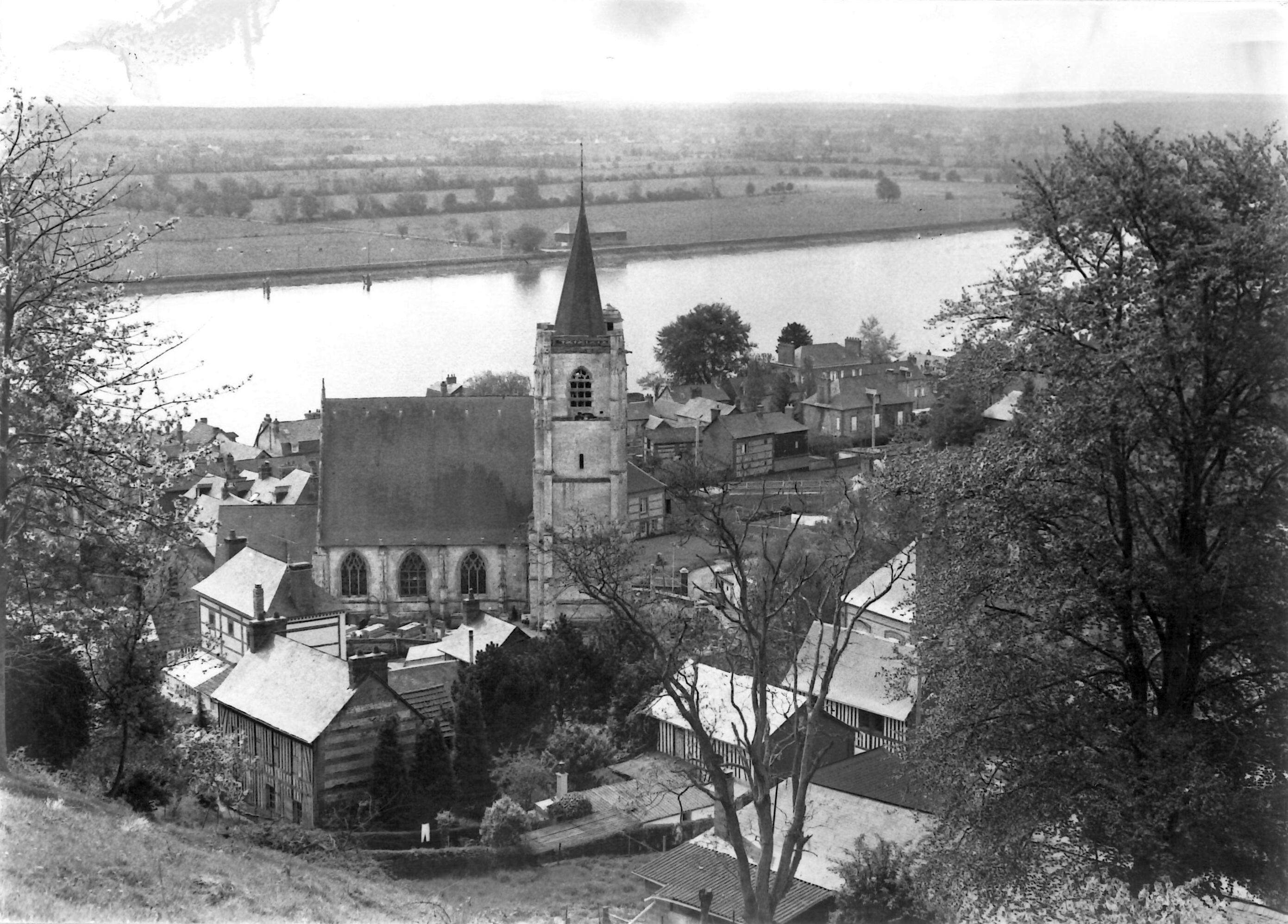Quartier de l'église Saint-Martin, vue depuis les hauteurs du village.- Cliché argentique, vers 1960 (Collection Huon).Immatriculation