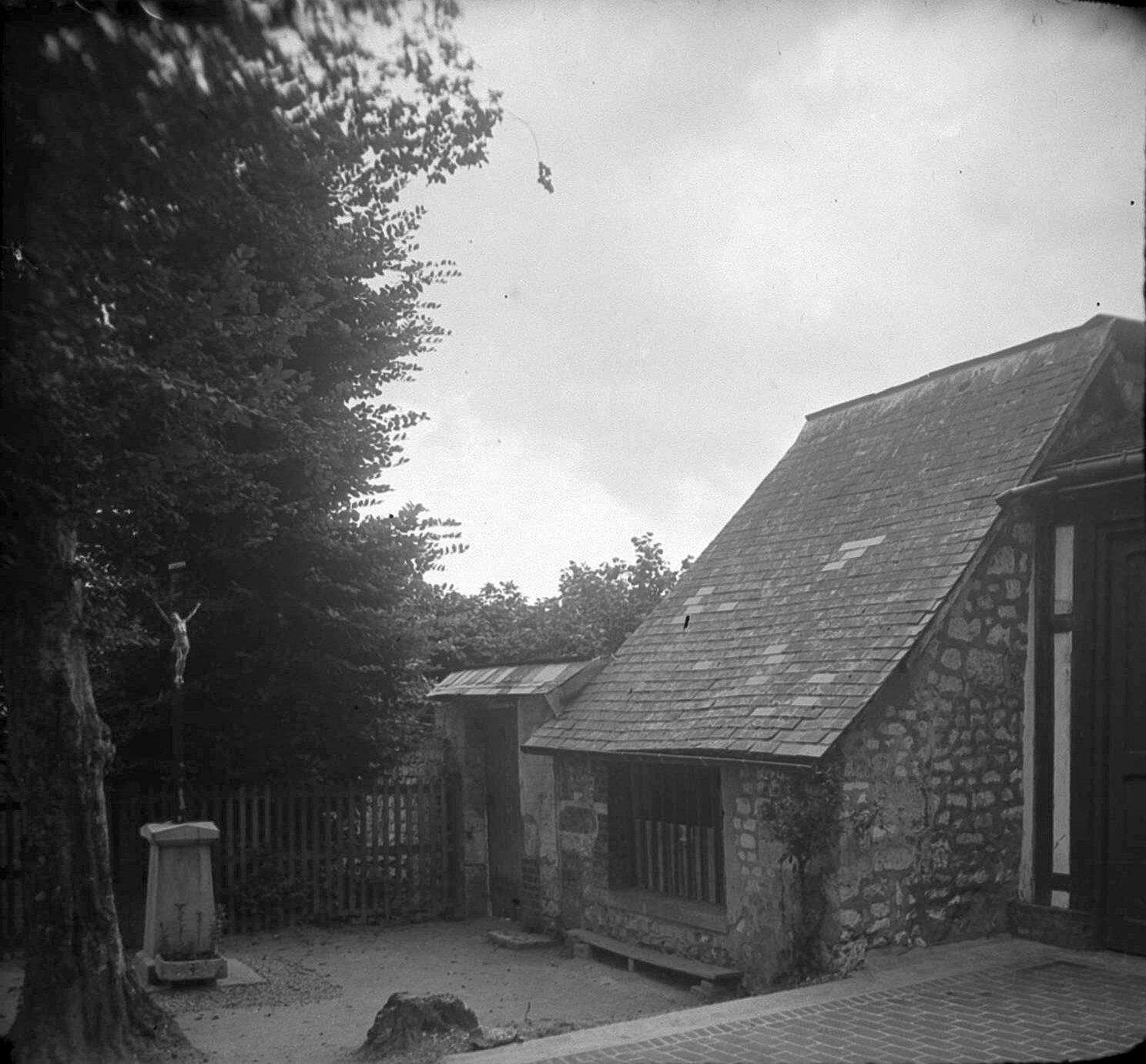 Entrée de l'ancienne chapelle.- Cliché sur verre, Robert Eude, 1935 (AD Seine-Maritime, 11 Fi).Immatriculation