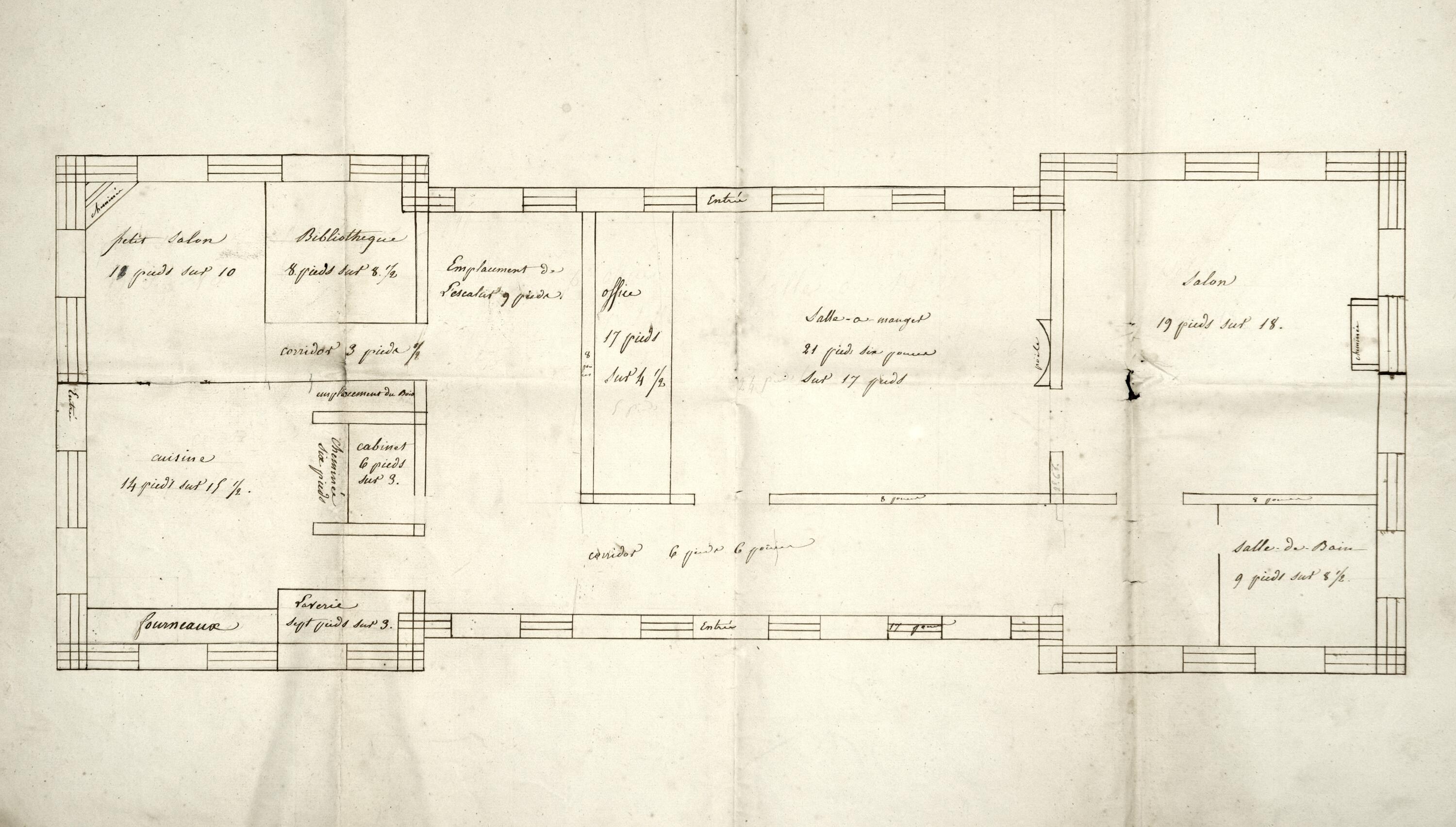 Plan du rez-de-chaussée.- Encre sur papier, vers 1810 (Collection particulière).Immatriculation